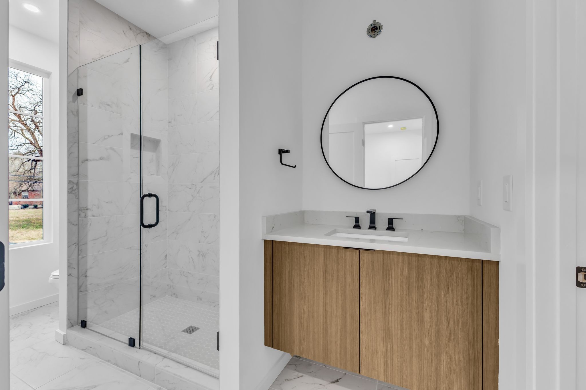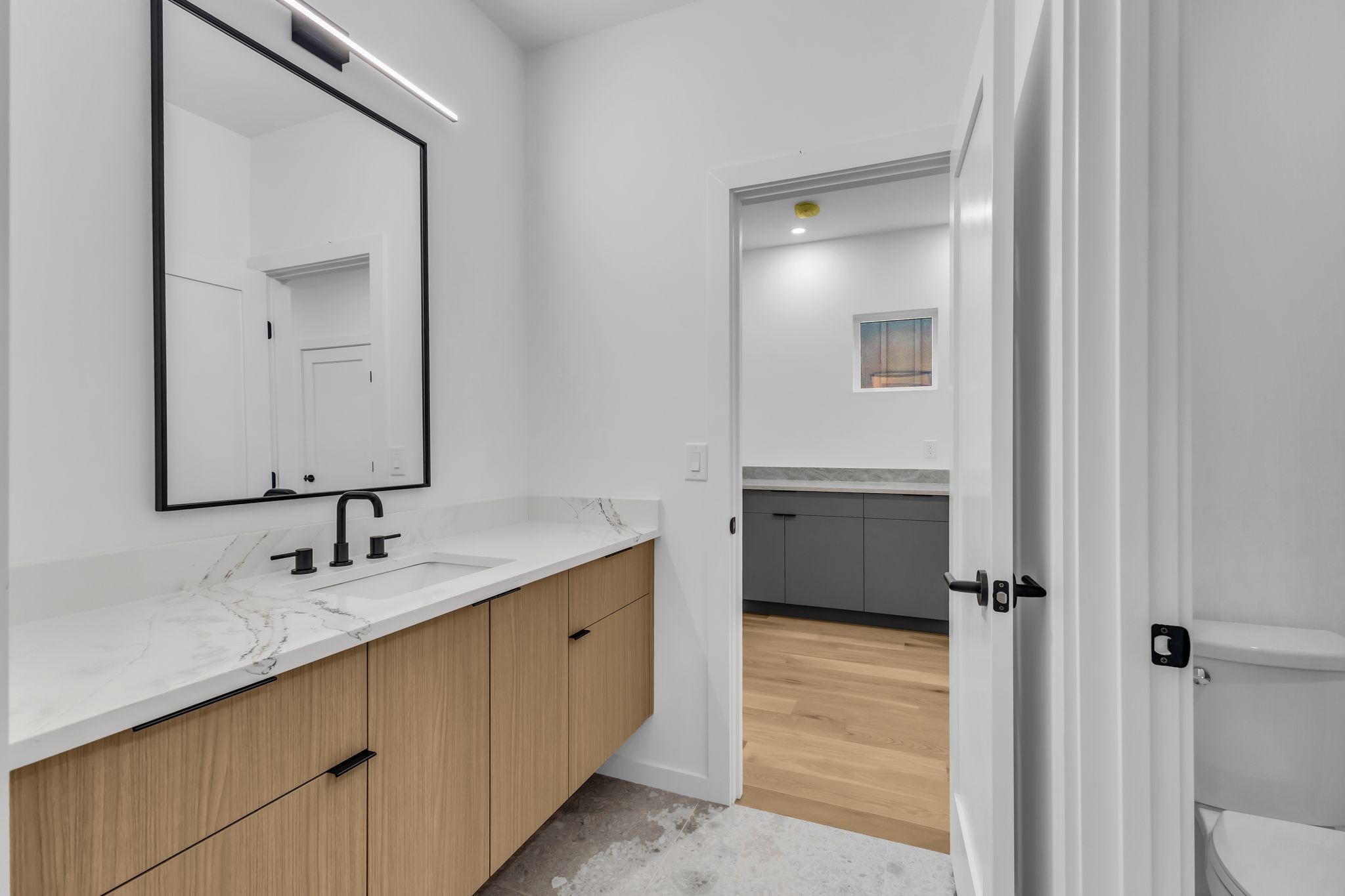 Modern New Construction with built-in 2 bedroom 2 bath basement rental unit or multi-generational opportunity. 6 bedrooms and 6.5 bathrooms. Primary suite on the main level, an additional 3 bedrooms and 3 full bathrooms upstairs. The 1282 sq ft daylight basement is so much bigger than a DADU, featuring 2 bedrooms and 2 full bathrooms with private exterior access. Could be a perfect in-law suite, rental income opportunity or multi-generational solution. Modern exterior design with beautiful, mid-century stone accents. 6 ft modern pivot door welcomes you to a perfect entertaining space. Linear fireplace in the living room, illuminated treads for the staircase. Chef's kitchen with Nashville Modern Cabinetry, Quartz surfaces, cabinet front appliances, floating vanities and a massive wrap around prep and serving area. The primary suite features a double vanity, separate shower and soaking tub with a large walk-in closet. Elevated patio decks on all three levels with treetop views. Huge double rec room upstairs. Massive lot with lots of options. 2 car garage with oversized parking pad to accommodate additional cars from tenants, in-laws, recording studio clients, etc. The basement flex space has so many possibilities including two work from home offices, recording studio, home business and more including a potential multi-generational option or income producing 2 bedroom 2 bath rental. Just completed and ready for the buyer punch walk. The seller is open to a 2-1 buy down on the interest rate as a negotiated concession if contracted prior.